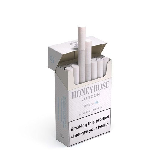 Honeyrose London White M Cigarettes offer a premium herbal smoking experience, completely free from tobacco and nicotine. Designed for individuals seeking a natural alternative, these cigarettes feature a carefully crafted blend of selected herbs, including marshmallow leaves, red clover, rose petals, and honey, providing a smooth, mild, and satisfying taste. The “M” designation signifies a refined balance of flavor and aroma, making them an excellent choice for those who prefer a mellow smoking experience without the harshness of conventional cigarettes.