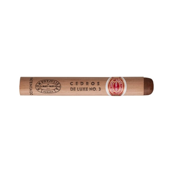The Romeo y Julieta Cedros de Luxe No.3 Cigar is an elegant and refined Corona, renowned for its balanced flavor profile, smooth draw, and exceptional Cuban craftsmanship. Measuring 5 1/8 inches in length with a 42-ring gauge, this medium-bodied cigar offers a sophisticated and nuanced smoking experience, making it an excellent choice for both seasoned aficionados and those new to Cuban cigars. Handcrafted using the finest Vuelta Abajo tobacco, it exemplifies the signature complexity and smoothness of the Romeo y Julieta brand.