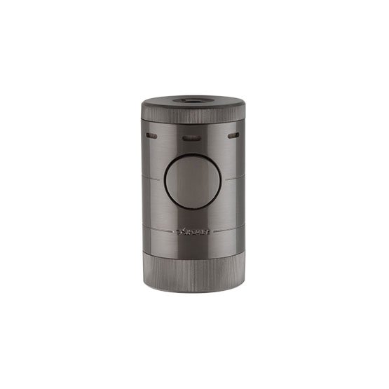 The Xikar Volta Tabletop Quad Jet Flame Cigar Lighter is a premium accessory designed for cigar aficionados seeking both functionality and style. Its cylindrical metal body houses four powerful jet flames, ensuring a quick and even light for your cigars. The lighter features an oversized push-button ignition that fits flush against the body, providing a sleek and modern appearance.