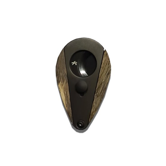 The Xi3’s body is crafted from durable metal with elegant and exotic material inlays, such as carbon fiber, wood, or titanium, offering both sophistication and strength. Its ergonomic teardrop shape provides a comfortable grip, while the spring-loaded locking mechanism ensures smooth and controlled operation. Designed to accommodate cigars up to a 54-ring gauge, it is perfect for medium to large cigars.